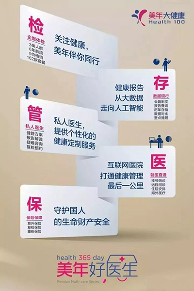 Health 100 hat das integrierte Gesundheitsmanagement ?Untersuchung, Bewahrung, Verwaltung, Medizin, Versicherung" eingeführt