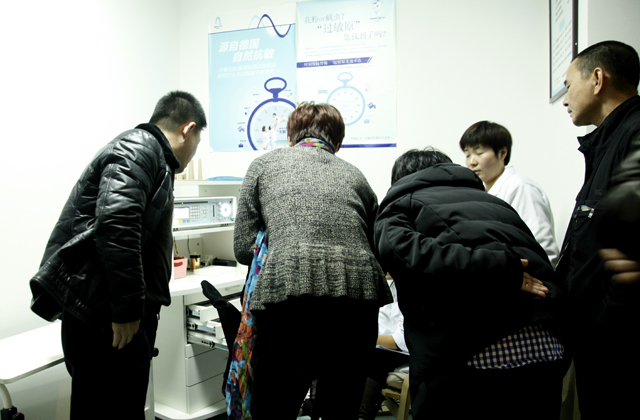 12月7日上午9時,美年大健康北京太陽宮店迎來了40余位從全國各地遠道而來的企業家及部分企業高級管理人員,他們均為和君商學院總裁班第六期學員,參與此次由商學院組織,世紀長河集團承辦的游學活動。作為東道主,世紀長河集團董事長、美年大健康產業(集團)副董事長郭美玲女士熱情迎接、全程陪同,安排專人帶隊講解,詳細介紹了各個科室的功能及服務流程,從設備硬件配置、“軟件”服務,全方面講解了美年大健康體檢中心的服務環境,郭美玲董事長又從健康體檢產業發展戰略方面做了深入解析,獲得在場學員一致認可。來到過敏原檢測治療室,郭美玲董事長駐足腳步,特別邀請項目負責人做詳細介紹。過敏原檢測與治療在當今社會環境污染加劇,生活壓力增大的情況下,顯得越發重要,該項目引進德國先進量子醫學設備,利用生物共振治療技術,配合資深醫療專家,能夠快速、高效的進行過敏原檢測與治療,幫助過敏患者免受傳統方式治療痛苦與時間等待。