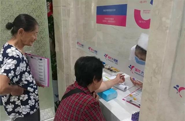 (美年大健康組織醫務人員為行動不便的老人上門做身體檢查)